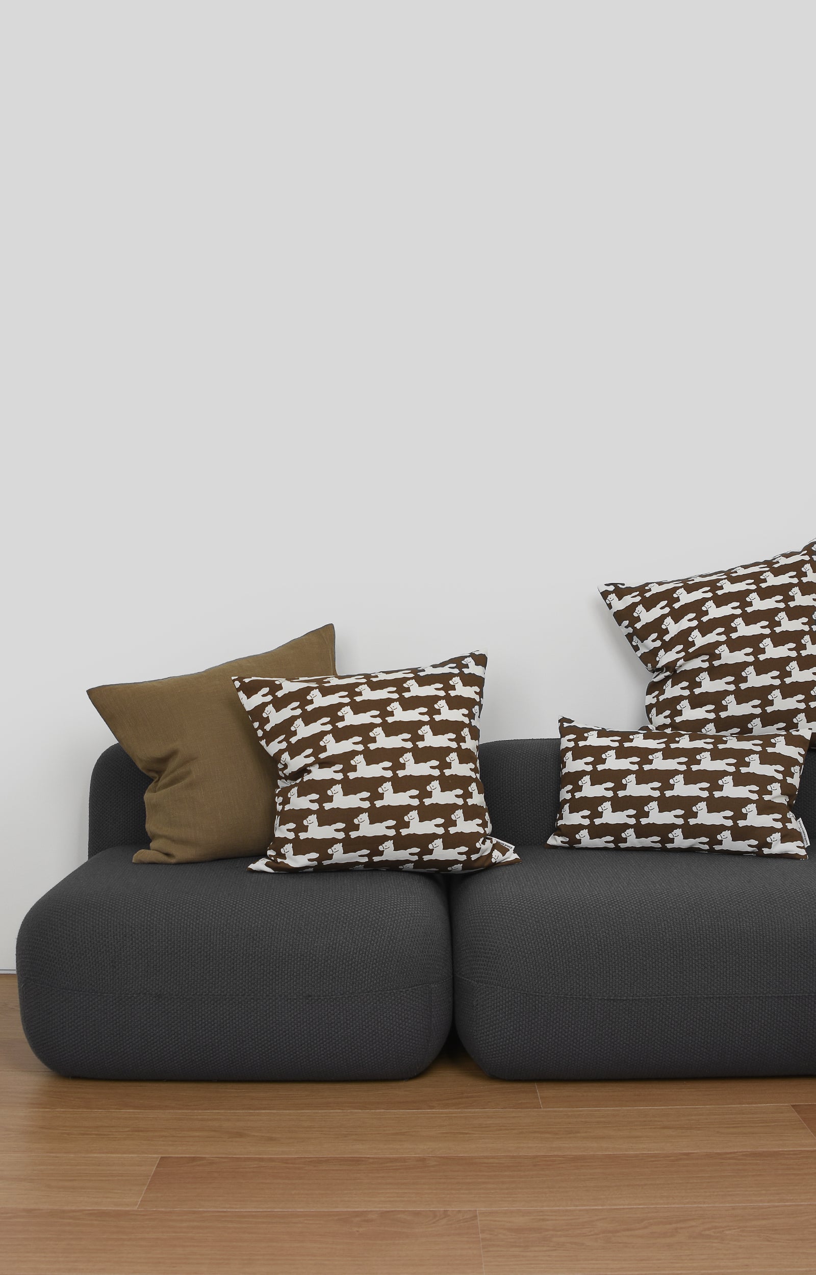 ハッピーポニー(Happy Pony Ⅱ)は、2026年の午年を迎えて発表されたパターンで、2021年に発売されたハッピーポニー(Happy Pony)から続く、新たなポニーの物語を描いています。草原を駆ける子馬のポニーを、よりやわらかく親しみやすい表情で表現し、ブラウンをベースにトーンダウンしたアイボリーカラーのポニーを加えることで、落ち着きがありながらも軽やかな雰囲気に仕上げました。繰り返し配置されたポニーの動きが、空間に心地よいリズムと自然な躍動感をもたらします。