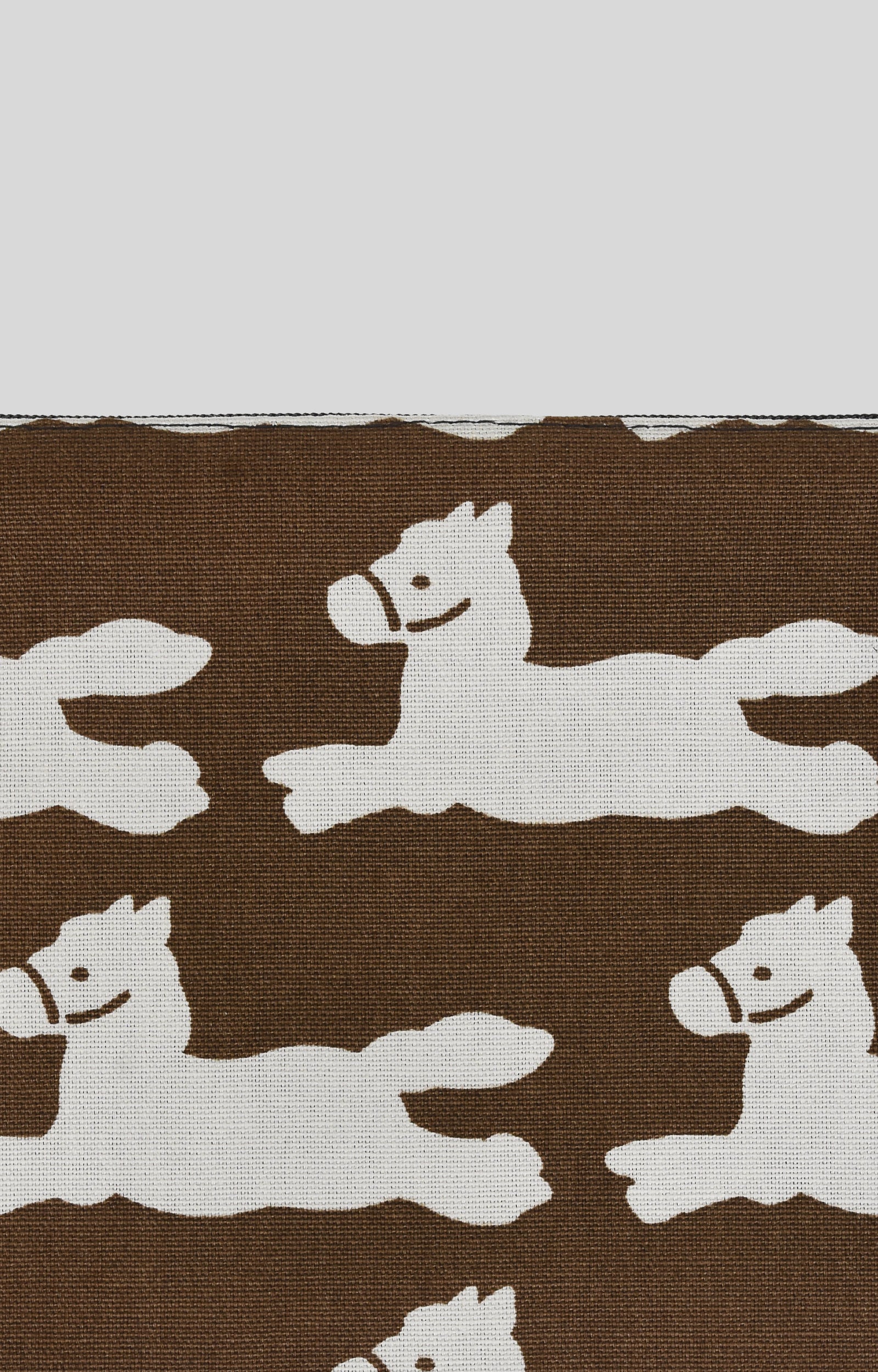 ハッピーポニー(Happy Pony Ⅱ)は、2026年の午年を迎えて発表されたパターンで、2021年に発売されたハッピーポニー(Happy Pony)から続く、新たなポニーの物語を描いています。草原を駆ける子馬のポニーを、よりやわらかく親しみやすい表情で表現し、ブラウンをベースにトーンダウンしたアイボリーカラーのポニーを加えることで、落ち着きがありながらも軽やかな雰囲気に仕上げました。繰り返し配置されたポニーの動きが、空間に心地よいリズムと自然な躍動感をもたらします。
