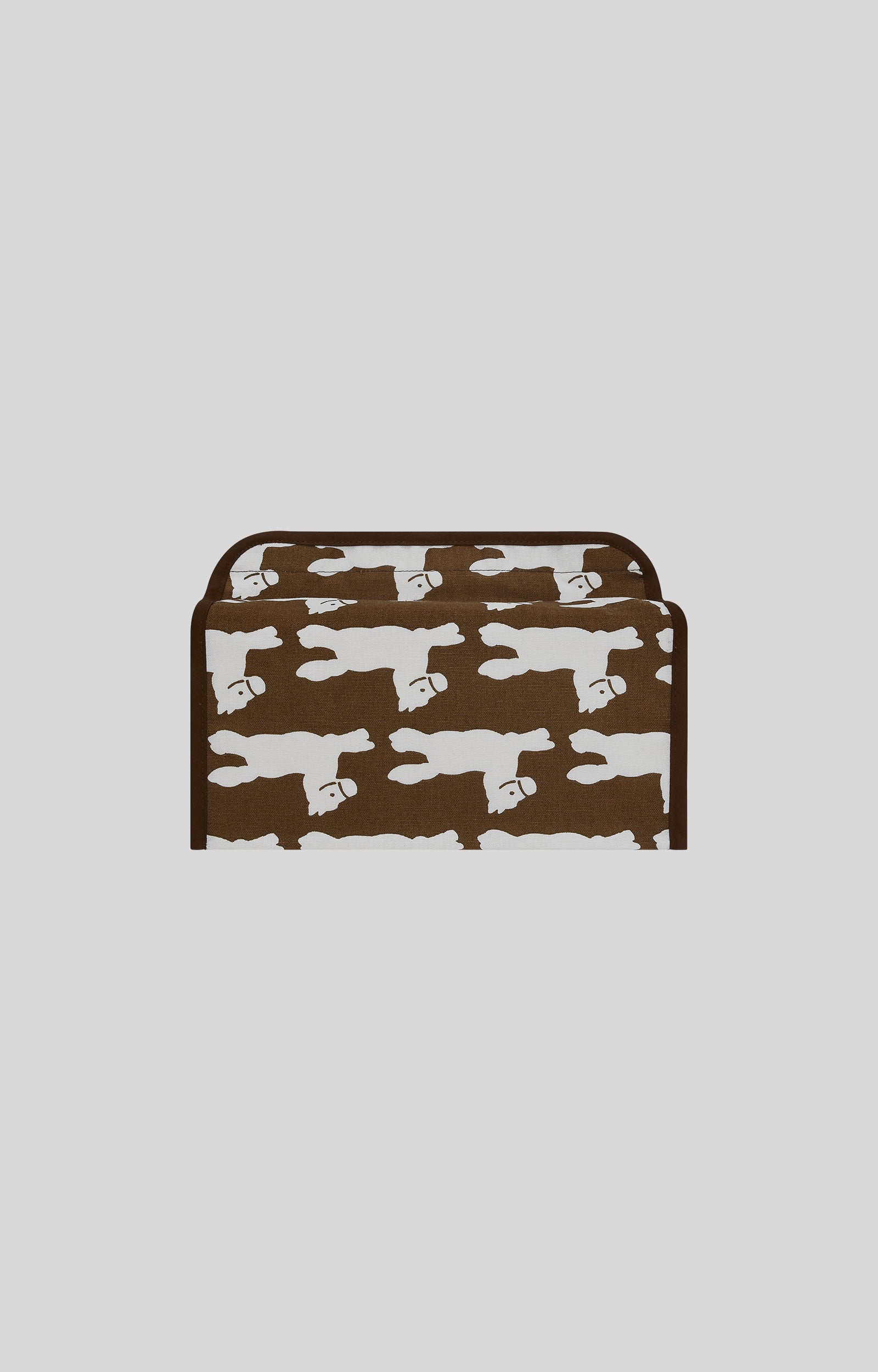長方形のレギュラーサイズのティッシュケースです。マジックテープで留めるタイプで、簡単に入れ替えができます。